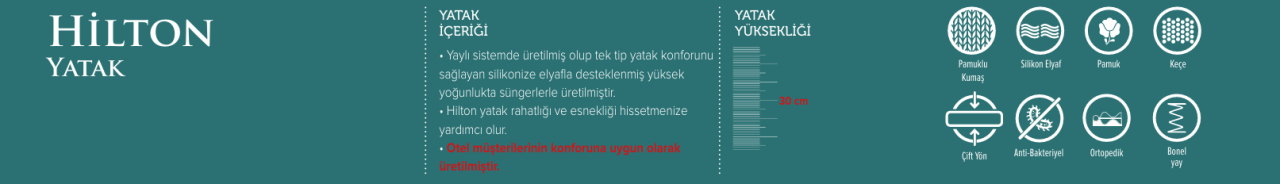 yoğunlukta süngerlerle üretilmiştir. - Hilton yatak rahatlığı ve esnekliği hissetmenize